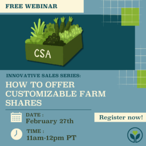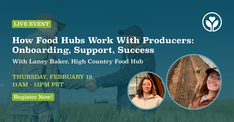 Join us on Thursday, February 19 at 11am PT for “How Food Hubs Work With Producers: Onboarding, Support, Success,” a live conversation with High Country Food Hub as they share a practical, behind-the-scenes look at how they work with producers.